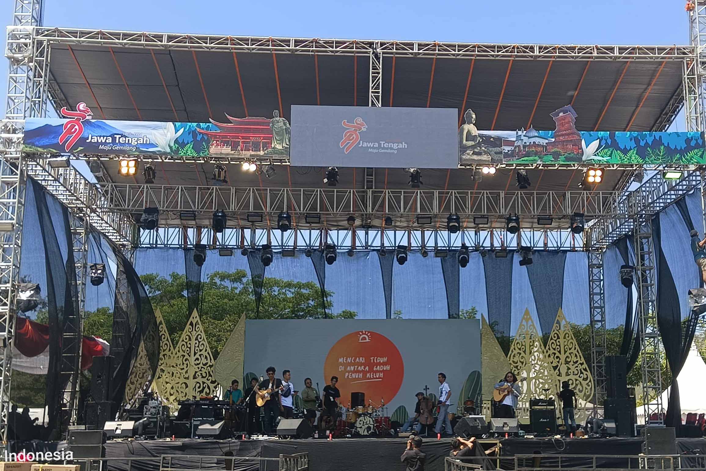 Backdrop harus proporsional dengan ukuran panggung agar terlihat seimbang dan tidak terlalu kecil atau berlebihan. -
